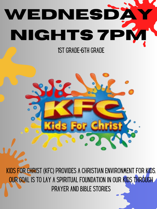 Kids For Christ (KFC) provides a Christian environment for Kids. Our goal is to lay a spiritual foundation in our Kids through prayer and Bible stories